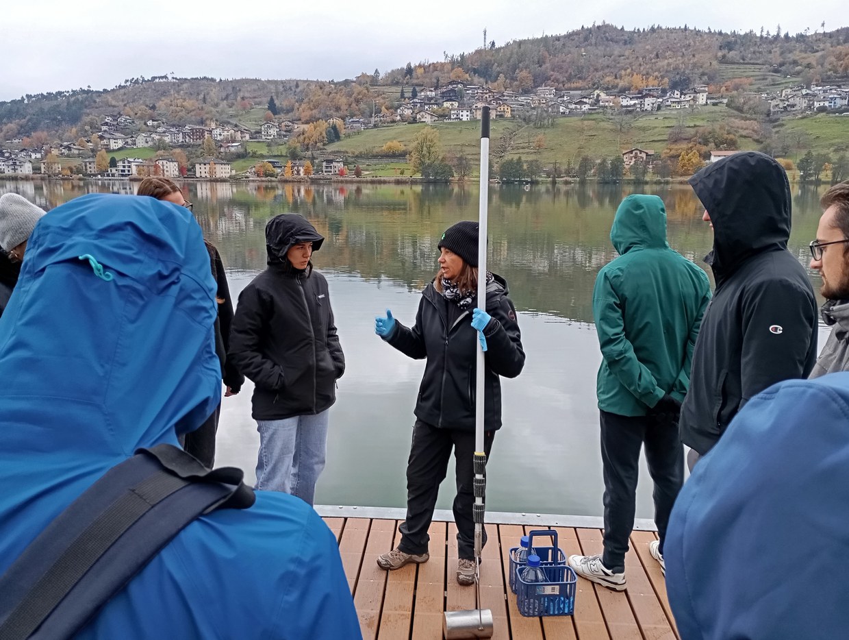 Visita ai Biotopi La Rocchetta e La Rupe e al Lago di Serraia accompagnati dal Dott. Kovatsch (Servizio Bacini Montani, Provincia Autonoma di Trento), la dott.ssa Fin (Servizio sviluppo sostenibile e aree protette) e la dott.ssa Pozzi (Agenzia provinciale protezione dell'ambiente) per affrontare il tema dell’inquinamento delle acque superficiali dovuto a diverse attività antropiche, delle tecniche di monitoraggio e delle soluzioni basate sulla natura per il miglioramento della qualità delle acque inquinate.